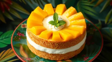 Prepara un Mango Cake tailandés, un postre tropical y exótico con mango fresco y crema ligera.