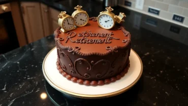 Prepara una torta para una fiesta de retiro laboral que celebra una carrera exitosa con un diseño elegante y delicioso.